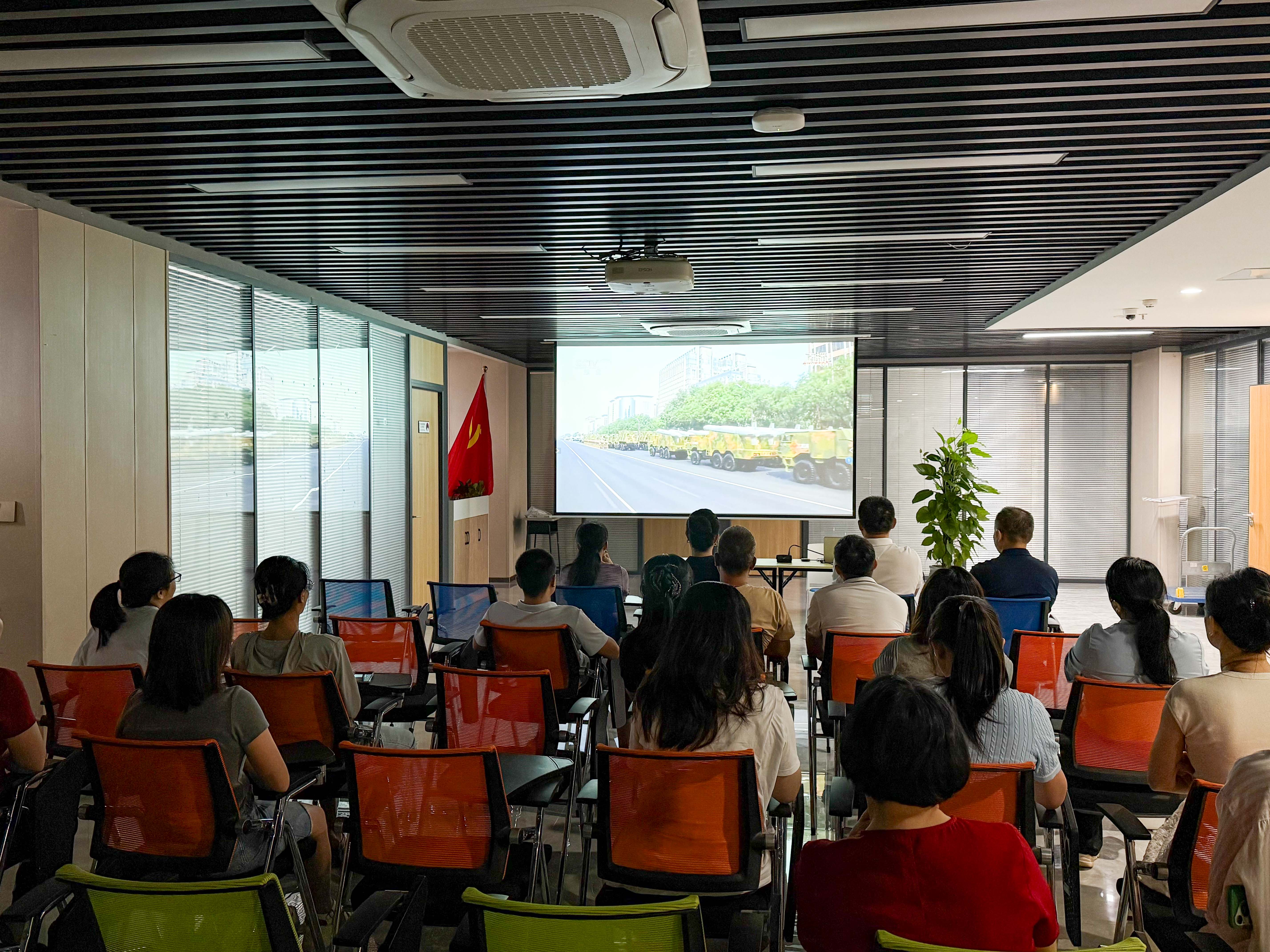 直播期間,大家認(rèn)真聆聽習(xí)近平總書記的重要講話,凝心觀看閱兵儀式的每一個精彩瞬間??罩凶o(hù)旗梯隊、徒步方隊、戰(zhàn)旗方隊、裝備方隊和空中梯隊等45個方(梯)隊依次通過天安門廣場,氣勢恢宏的受閱方陣讓每一位員工心潮澎湃、熱血沸騰。大家直觀感受到了新時代人民軍隊的昂揚風(fēng)貌與強大的國家實力,深深被這場國家盛典所震撼。
